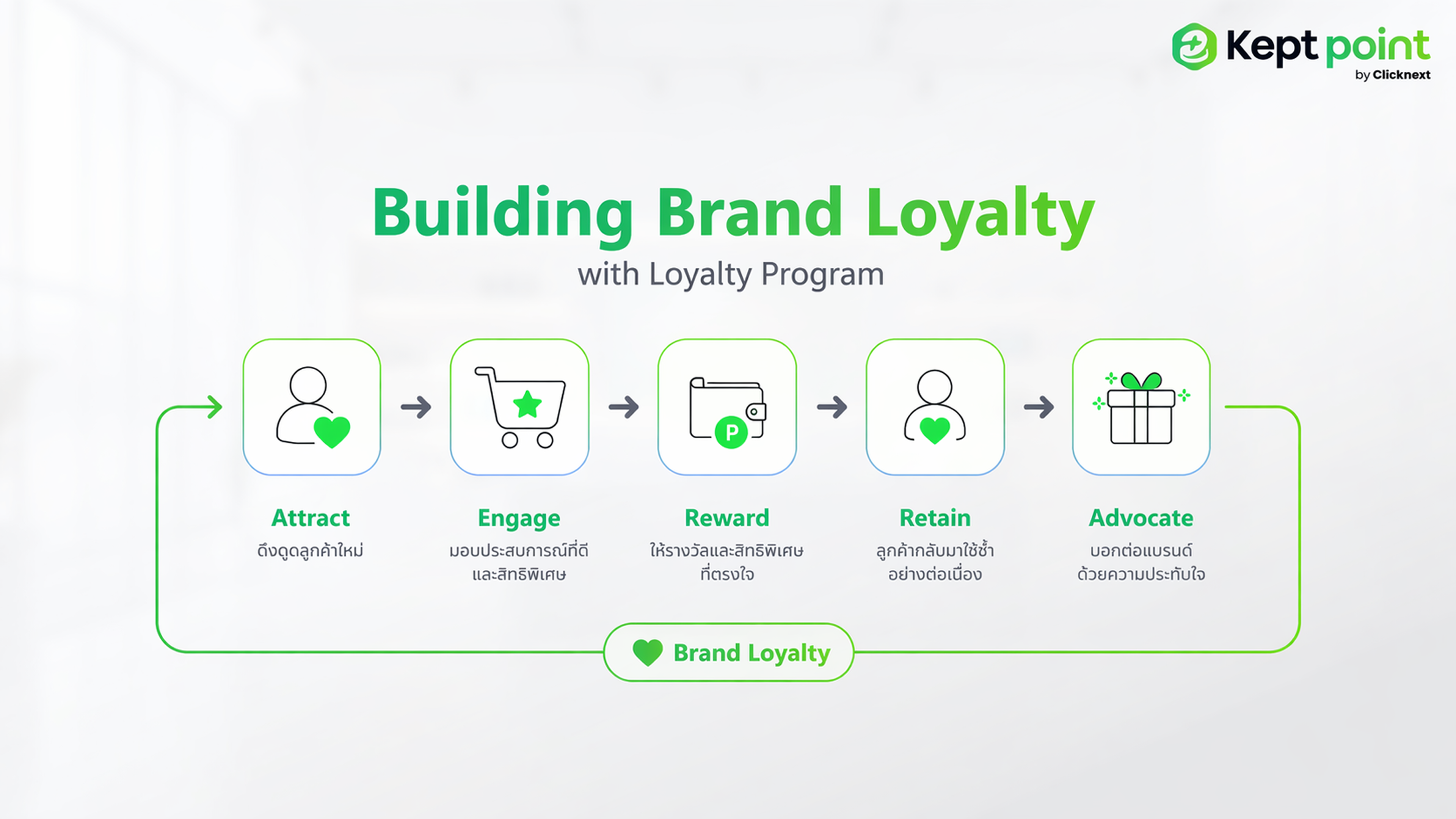 และถ้าคุณอยากยกระดับ Loyalty Program ให้ทำได้มากกว่านั้น Keptpoint ของเราในฐานะ AI Loyalty Platform พร้อมช่วยคุณต่อยอดได้ครบมากขึ้น โดยเรารวม AI Solution เข้ากับ Marketing Platform ไม่ว่าจะเป็นระบบรวมแชท ระบบเว็บไซต์ และระบบ CRM เพื่อสร้างประสบการณ์ที่ดีให้ลูกค้าในทุก ๆ การสั่งซื้อ และช่วยให้แบรนด์ของคุณสร้าง Brand Loyalty ได้อย่างต่อเนื่อง