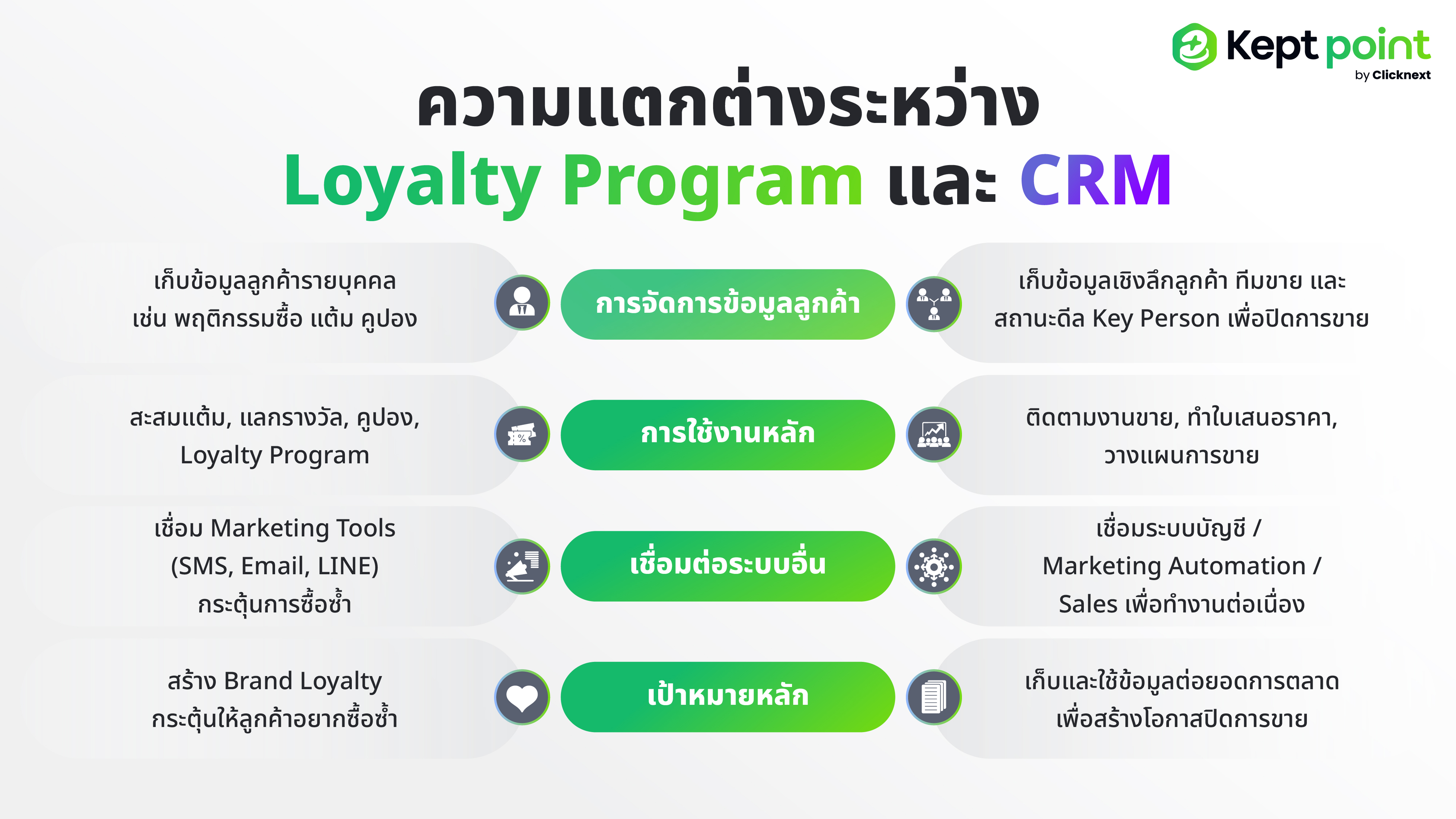 ถ้าธุรกิจของคุณกำลังมองหาโซลูชันที่ช่วยยกระดับทั้งการบริหารลูกค้าและการสร้าง Loyalty แบบครบวงจร ติดต่อทีมงานของเรา เพื่อรับคำปรึกษาตอบโจทย์ธุรกิจของคุณฟรีวันนี้ แอด Line: @keptpoint ได้เลย