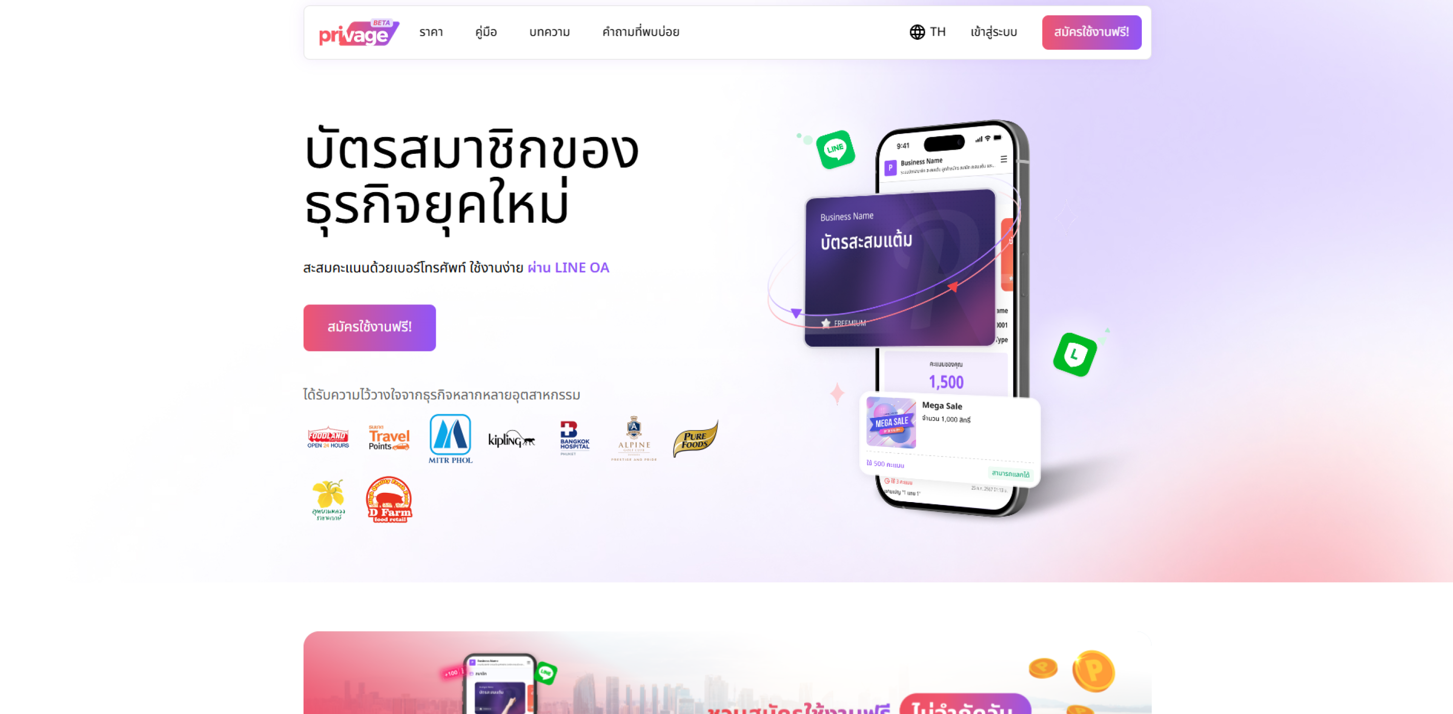 แพลตฟอร์มสัญชาติไทยที่ขึ้นชื่อเรื่องความคุ้มค่าและฟีเจอร์ที่ครบครันสำหรับ SME ออกแบบมาให้ร้านค้าขนาดเล็กถึงกลาง สามารถมีระบบสะสมแต้มได้ในราคาที่เข้าถึงง่าย มีระบบระดับสมาชิกที่ตั้งเงื่อนไขได้สามารถปรับแต่ง Logo และหน้าตาบัตรสมาชิกดิจิทัลให้เป็นแบรนด์ตัวเองได้ง่าย และมีระบบจัดการสิทธิประโยชน์ตามรายสาขาที่แม่นยำ